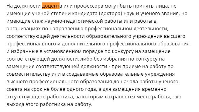 Чтобы стать доцентом необходимо соблюдать только два условия: