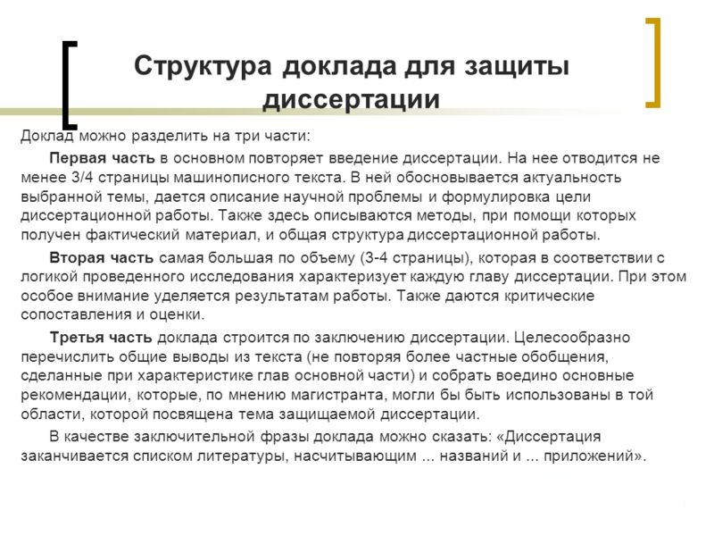Условно речь выступления на защите диссертации можно разделить на три основные части: