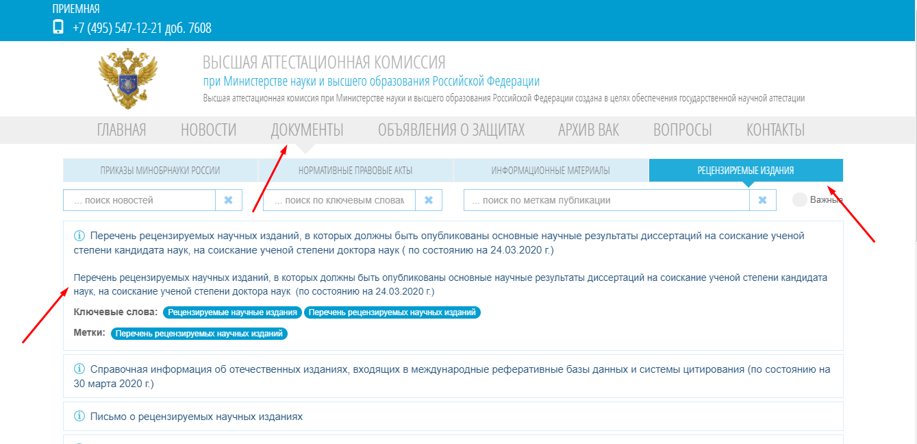 Список научных журналов Высшей аттестационной комиссии в РФ обновляется ежегодно при положительном решении по новым заявкам и исключении из его числа старых сборников, которые Высшая аттестационная комиссия больше не рекомендует как самые высококачественные и престижные. Узнать новый перечень рецензируемых научных изданий ВАК можно на сайте Высшей аттестационной комиссии РФ , где постоянно размещается актуальная информация.